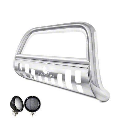 Black Horse Bull Bar Kit Skid Plate Stainless Steel Compatible with 1999-2004 Jeep Grand Cherokee-CBS-JEB4001SP-PLFB