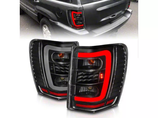 Application. The C-Bar LED Tail Lights; Black Housing; Clear Lens fits all 1999-2004 Jeep Grand Cherokee WJ Models.
