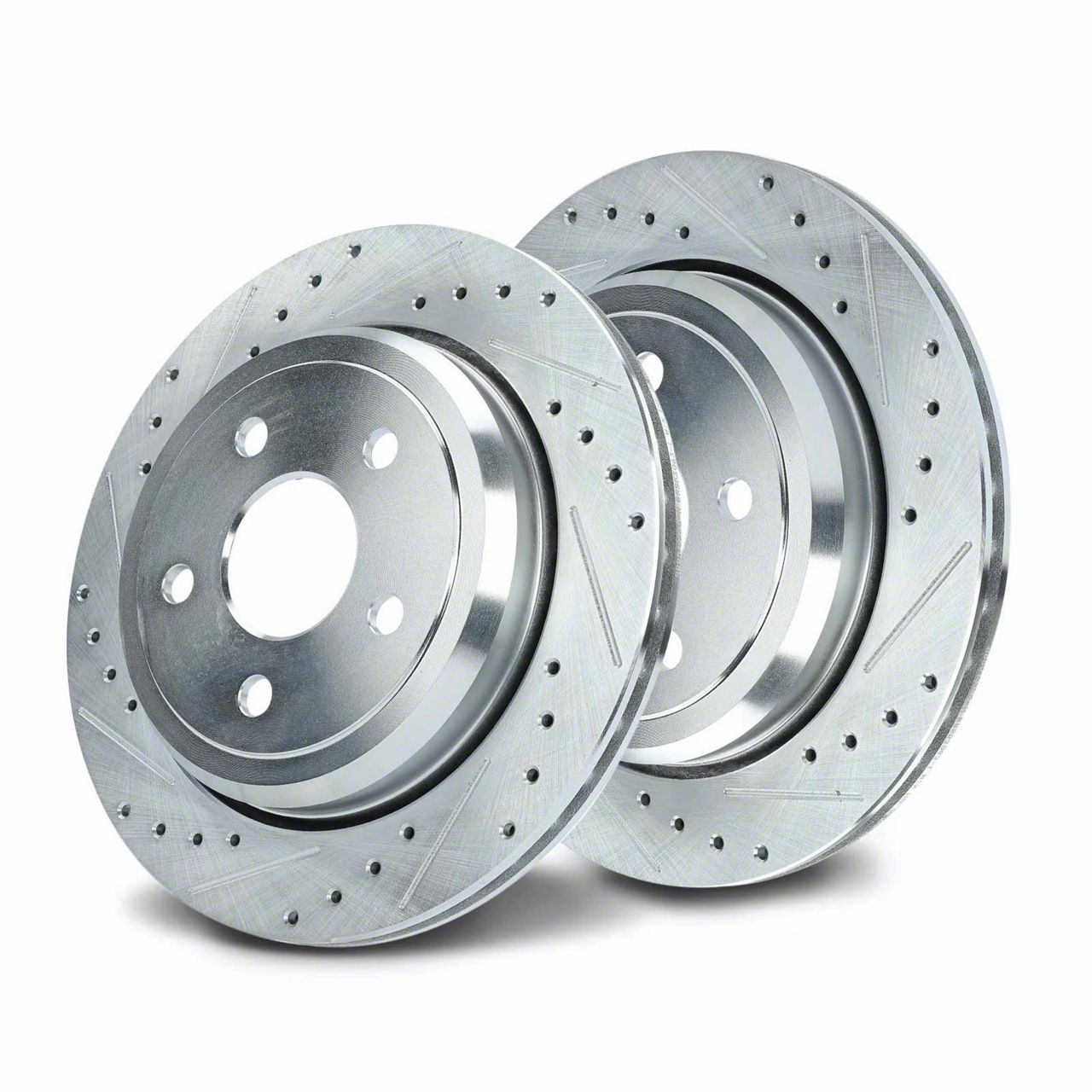 High-Performance Braking Solution. These drilled and slotted rotors are designed as a direct replacement for the rear braking system of your vehicle, ensuring optimal braking performance. Engineered to improve heat dissipation, they help prevent brake fade while enhancing overall stopping power. Their unique design minimizes the risk of rotor warping or cracking, contributing to a smooth and quiet braking experience.