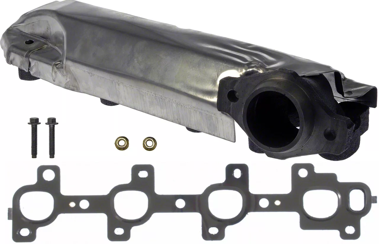 Construction and Appearance. The Exhaust Manifold is made from high-grade cast iron for maximum durability and heat resistance. It features a natural finish that resists corrosion and wear. All gaskets and mounting hardware are included for a complete installation.