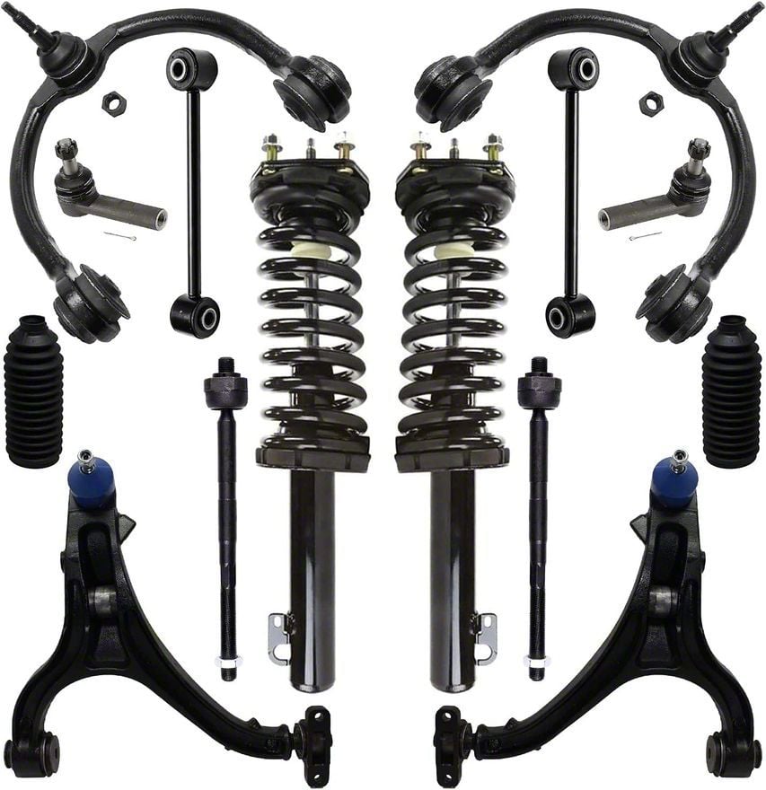 Kit Includes: (2) Front Strut w/Coil Spring + (4) Front Upper Lower Control Arm + (2) Front Sway Bar Link + (4) Front Inner Outer Tie Rod + (2) Rack & Pinion Boots