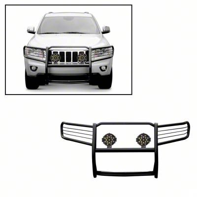 Application. The Grille Guard with 7-Inch Round LED Lights; Black fits all 2005-2010 Jeep Grand Cherokee WK models.