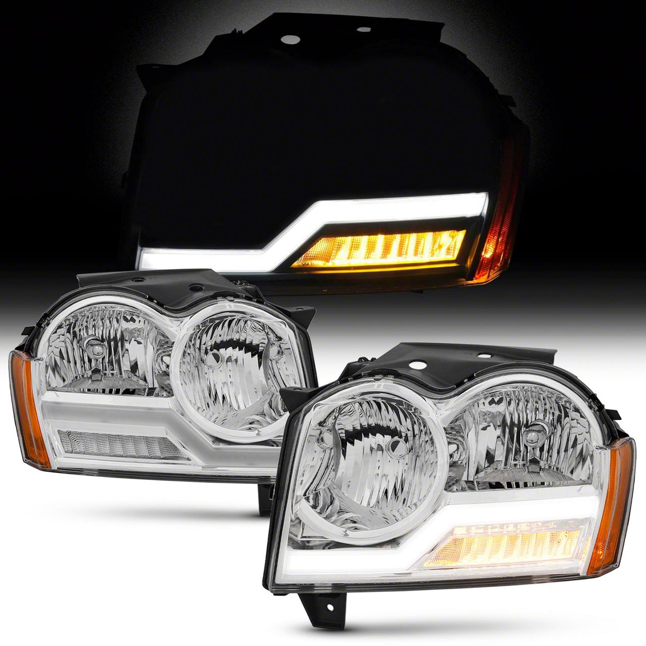 Headlights with LED Light Bar; Chrome Housing; Clear Lens (05-07 Jeep Grand Cherokee WK)Find parts that fit my vehicle