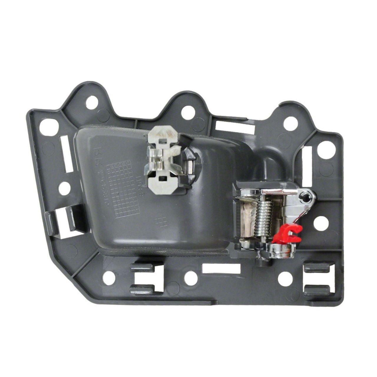 Interior Door Handle Replacement. The Interior Door Handle Repair Kit; Rear Driver Side; Chrome and Gray is designed to restore the functionality and appearance of your vehicle's rear driver side interior door handle. This kit enables a direct replacement of a worn, broken, or faded door handle, ensuring ease of use and added aesthetic appeal within your vehicle’s cabin.