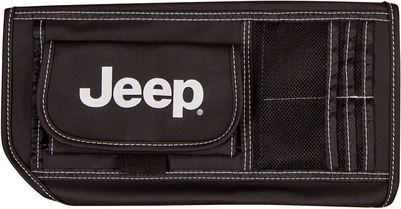 Premium Storage Solution. Keep your interior free from messes by keeping your papers, cards, and other items organized with this Jeep Logo Visor Media Organizer. This system comes with 6, small mesh window document pockets and a large pocket with hook-and-loop closure. Additionally, it is designed to perfectly fit your Grand Cherokee’s visor for a neat interior look with a distinctive style bearing the iconic Jeep logo.