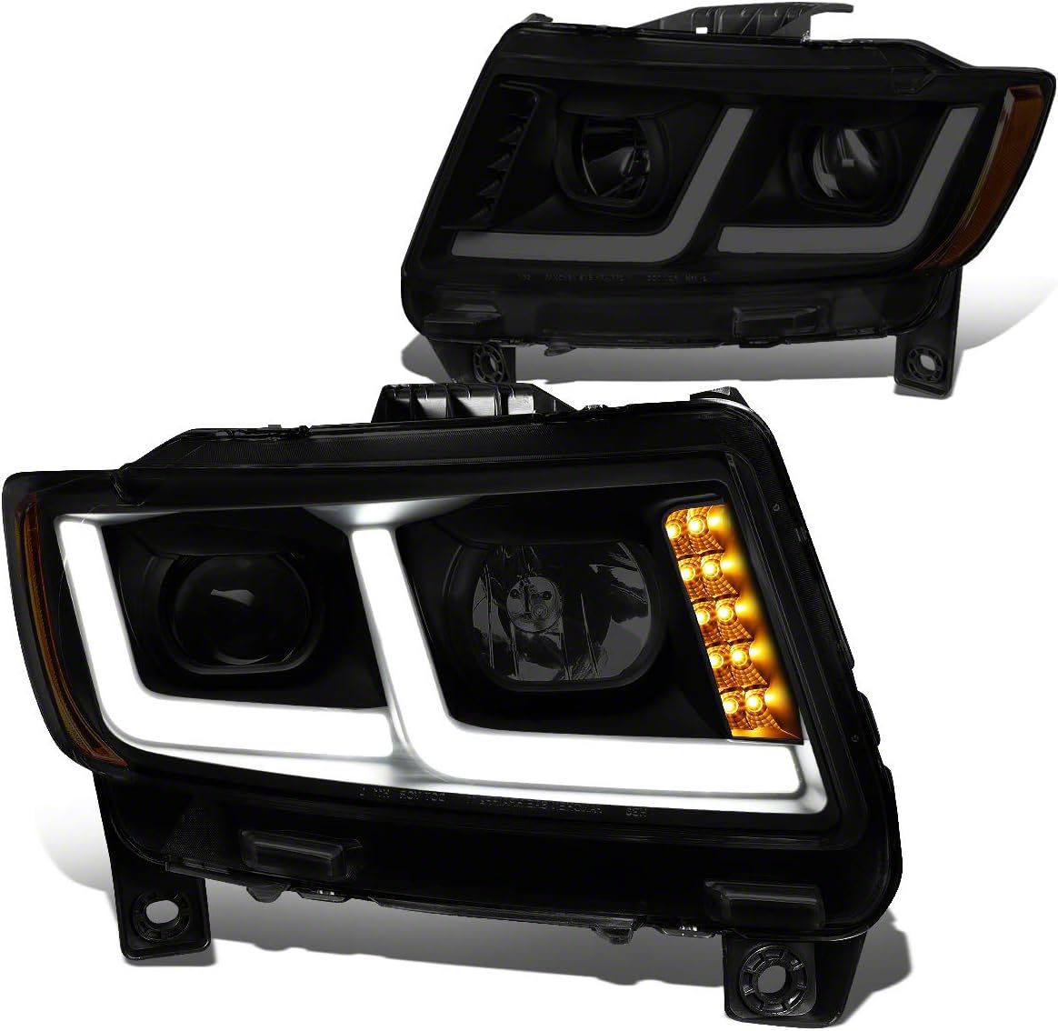 Application. This LED DRL Projector Headlights with Amber Corners fits 2011-2013 Jeep Grand Cherokee WK2 w/ Factory Halogen Headlights.