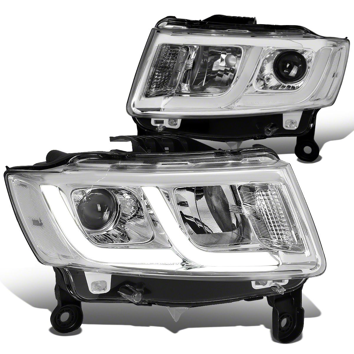 Modern Lighting Upgrade. Designed for 2014 - 2016 Jeep Grand Jeep Cherokee WK2 models with factory halogen headlights models, these LED DRL Projector Headlights enhance nighttime visibility while adding modern daytime running light styling to the front lighting system. Projector-style headlights help provide more focused light output compared to traditional reflector housings. Engineered as plug-and-play direct replacement components, these assemblies provide improved lighting performance and appearance.