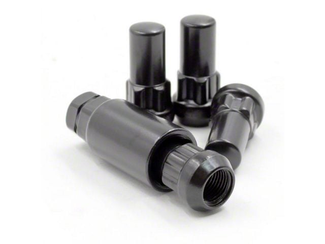 1/2" Thread | 1.90"Long | Dual Hex Key 13/16" and 3/4" | 60 Degree Acorn Conical | Closed End Bulge | Black Finish | 1 Piece Constuctuon | 4 Locks + Key