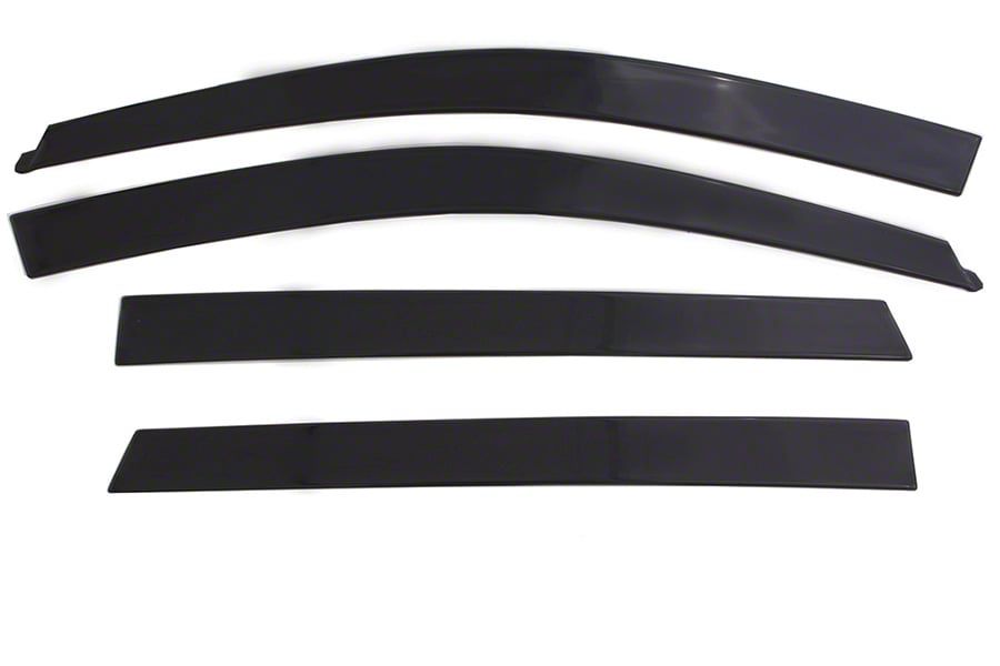 Construction and Appearance. Made from warp-resistant ABS material, the deflectors are both strong and flexible, ensuring durability and resistance to the elements. The design features a low profile, aerodynamic shape with chrome trim and a dark smoke finish, offering a sleek integration with the vehicle's existing lines.