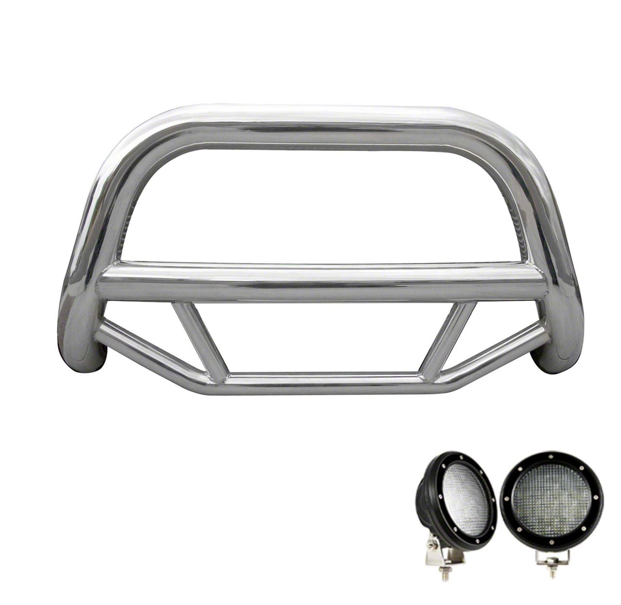 Max Bull Bar with 5.30-Inch Black Round Flood LED Lights; Stainless Steel (08-10 Jeep Grand Cherokee WK)Find parts that fit my vehicle