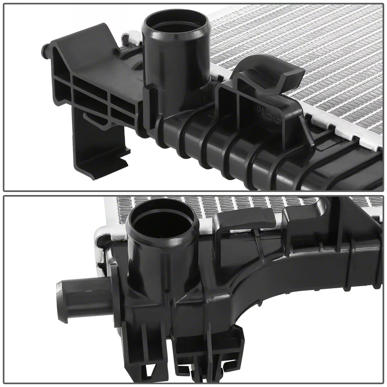Construction and Appearance. Built from lightweight aluminum, this radiator enhances cooling efficiency without adding unnecessary weight. It's manufactured to OEM specifications, ensuring proper fitment with factory hoses, mounting points, and transmission cooler lines. The aluminum core provides long-lasting performance and is ideal for daily drivers needing a reliable, cost-effective solution that maintains factory cooling capabilities.