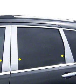 Premium Quality and Durability. Elevate the style of your Jeep Grand Cherokee WK2 with the Pillar Post Trim; Chrome. This trim kit is the perfect way to add a sleek, modern touch to your vehicle, enhancing its overall appearance with minimal effort. Crafted from high-grade stainless steel, this pillar post trim is designed to last. The chrome finish not only adds a sophisticated look to your Grand Cherokee but also provides a corrosion-resistant and scratch-proof surface, ensuring it stays pristine in all weather conditions.
