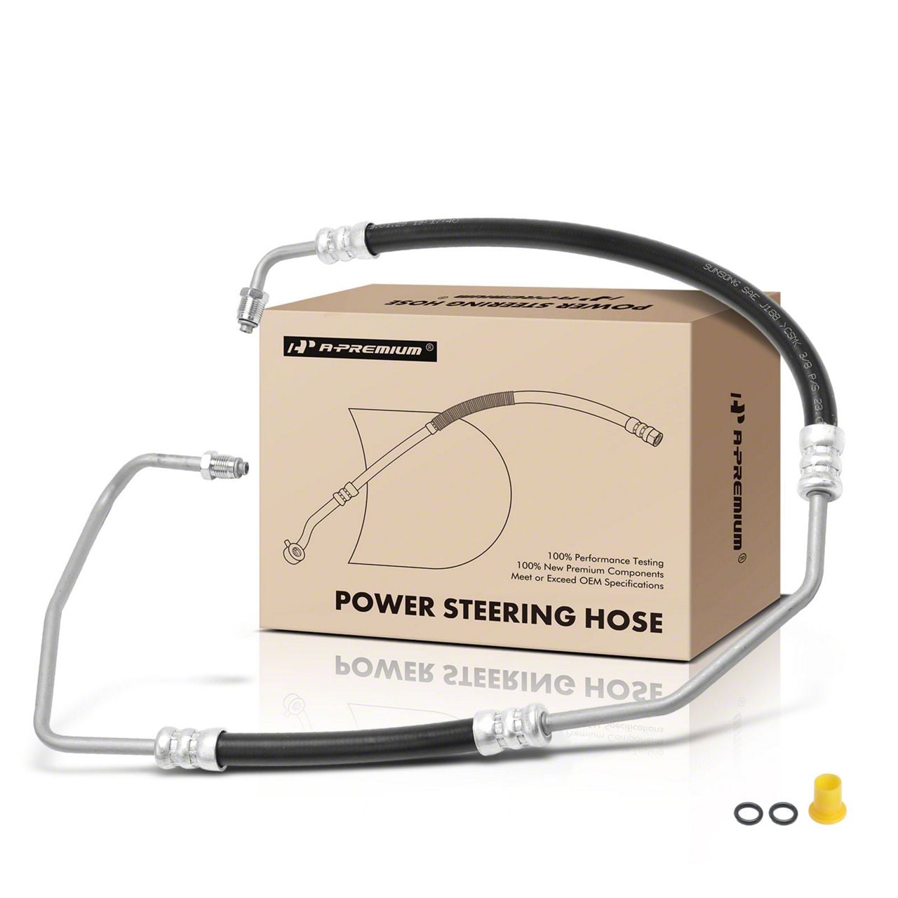 Power Steering Hose Assembly. The Power Steering Pressure Line Hose Assembly; To Gear from Hydraulic Fan Motor provides a critical fluid connection within the vehicle’s power steering system. This hose assembly ensures proper hydraulic fluid flow, facilitating smooth, responsive steering and safe vehicle handling. It is designed to replace worn or damaged hoses, restoring original steering performance and preventing leakages that can affect braking or steering.