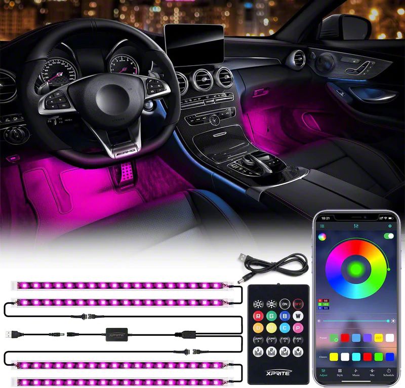 Installation. Putting this RGB LED Interior Lights Strip on your ride is easy and requires no drilling.