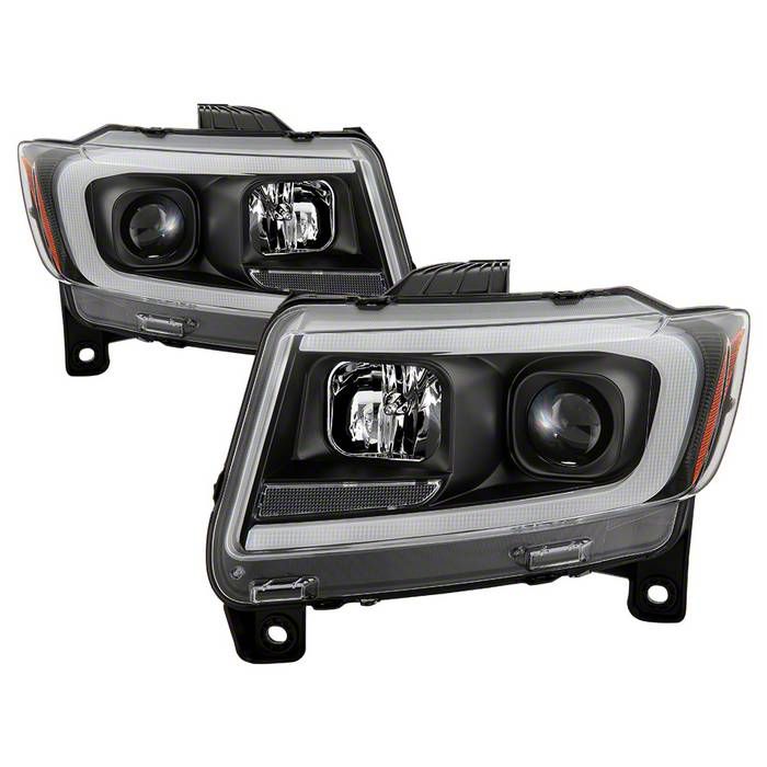 Application. The Signature Series Light Bar Projector Headlights; Black Housing; Clear Lens fit all 2011-2013 Jeep Grand Cherokee WK2 models with Factory Halogen Headlights.