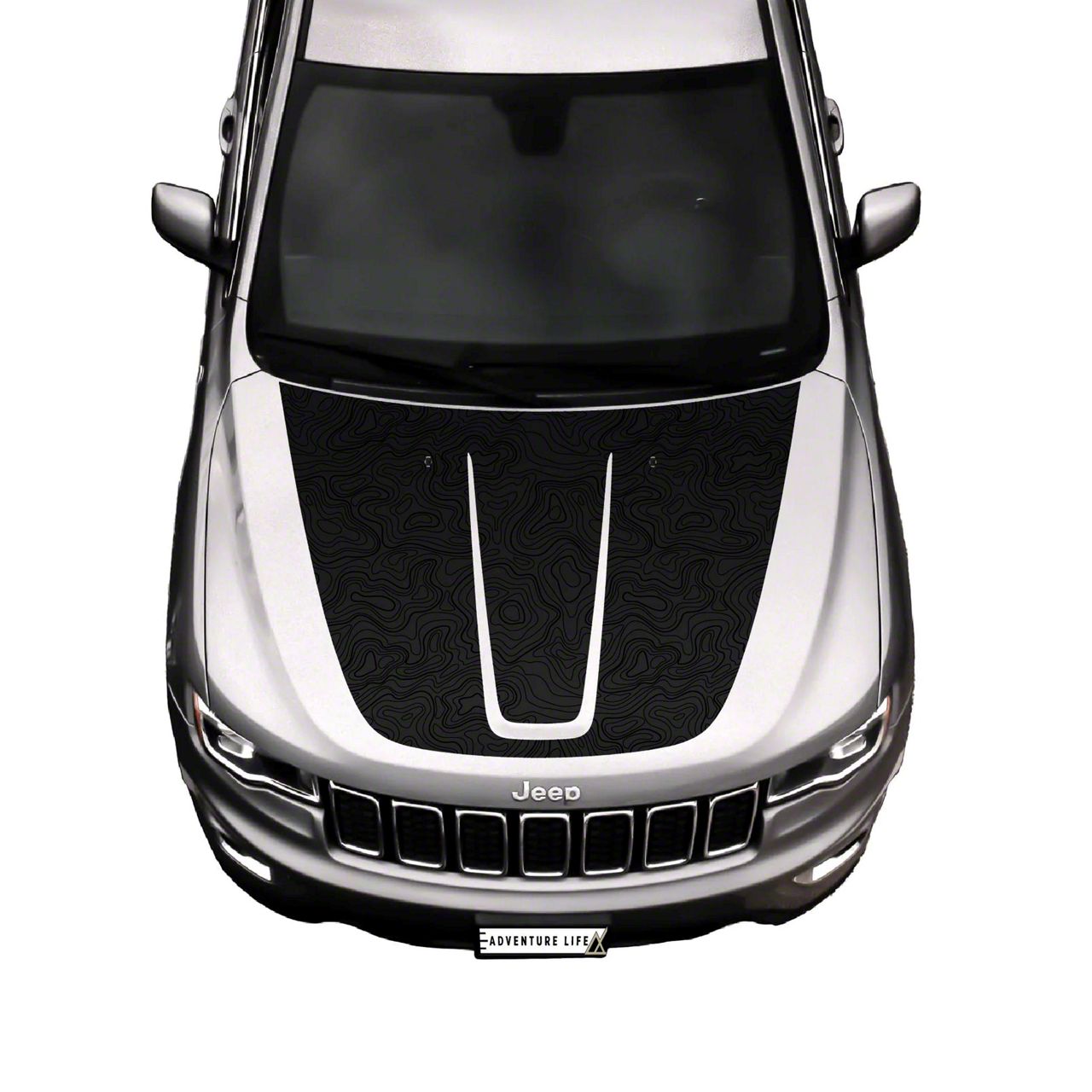 Application. This Topographic Map Hood Graphic without Washer Nozzle Cutouts fits 2011-2021 Jeep Grand Cherokee WK2, excluding Trackhawk models.