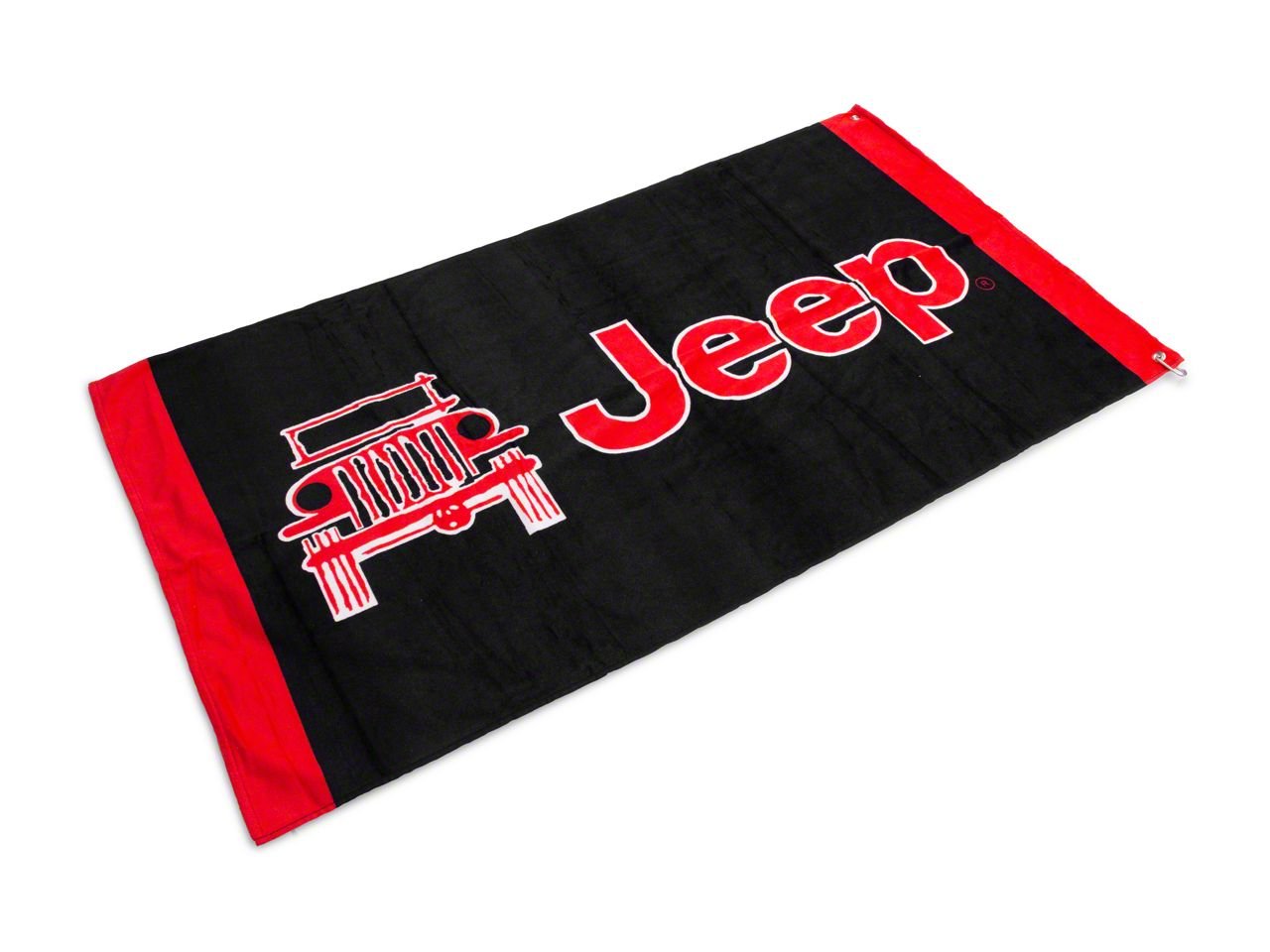 Versatile Uses. This clever Jeep "Towel2Go" is an oversized beach towel that is the coolest towel you'll ever own, because it has a Jeep on it! Plus, it comes with an added benefit. At one end, each corner has a grommet hole and a carabineer clip comes hooked to one of the holes. Use the clip to keep track of your keys when you're at the beach. Or use it to keep the towel in place drying it on a windy day. You can also use it to hold the towel against your seat driving home from a dirty day. It's a simple concept but you'll find lots of uses for the carabineer clip built into this towel.
