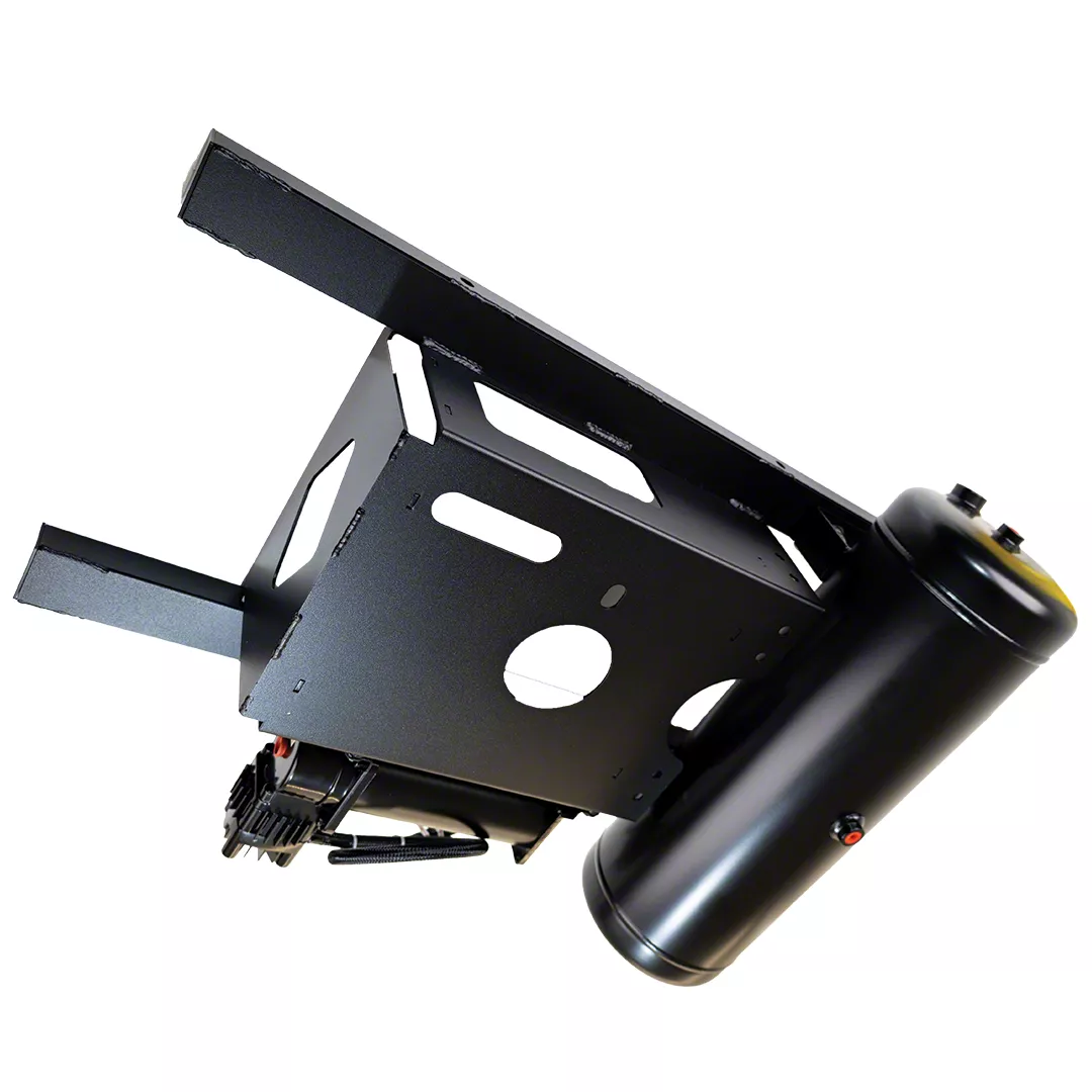 Thunderous Sound. Unleash the power of a thunderous train horn with the Universal Spare Tire Location Train Horn OnBoard Air System; Black. This system ingeniously utilizes your spare tire location, keeping your vehicle's aesthetics intact while providing a discreet and efficient mounting solution. This kit is designed for straightforward setup, ensuring that you can have your train horn and onboard air system ready to roll in no time.
