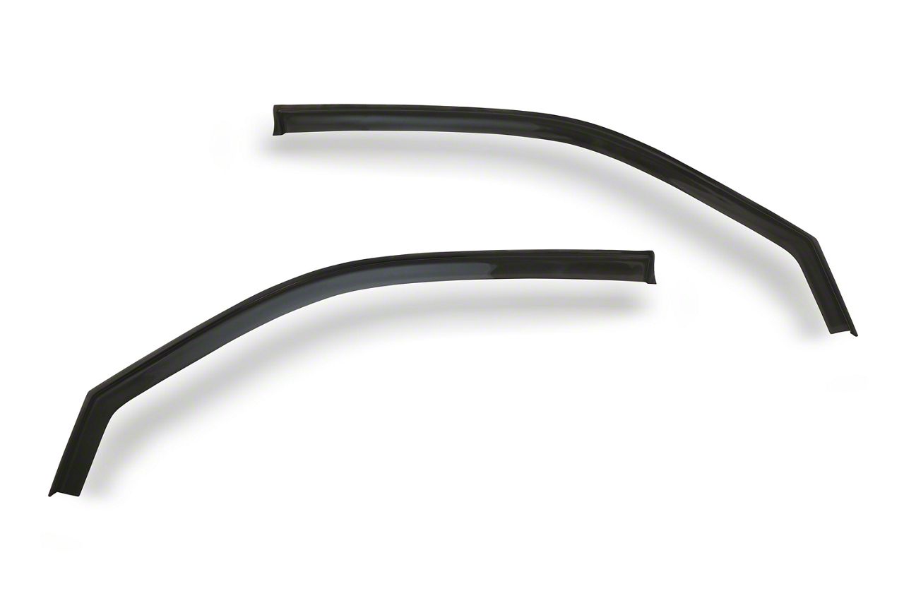 Construction and Appearance. These deflectors are crafted in the USA from durable impact-modified acrylic featuring added UV protection. They utilize a 3D molded rigid design rather than a film, finished in a dark smoked acrylic color for a subtle yet sleek look.