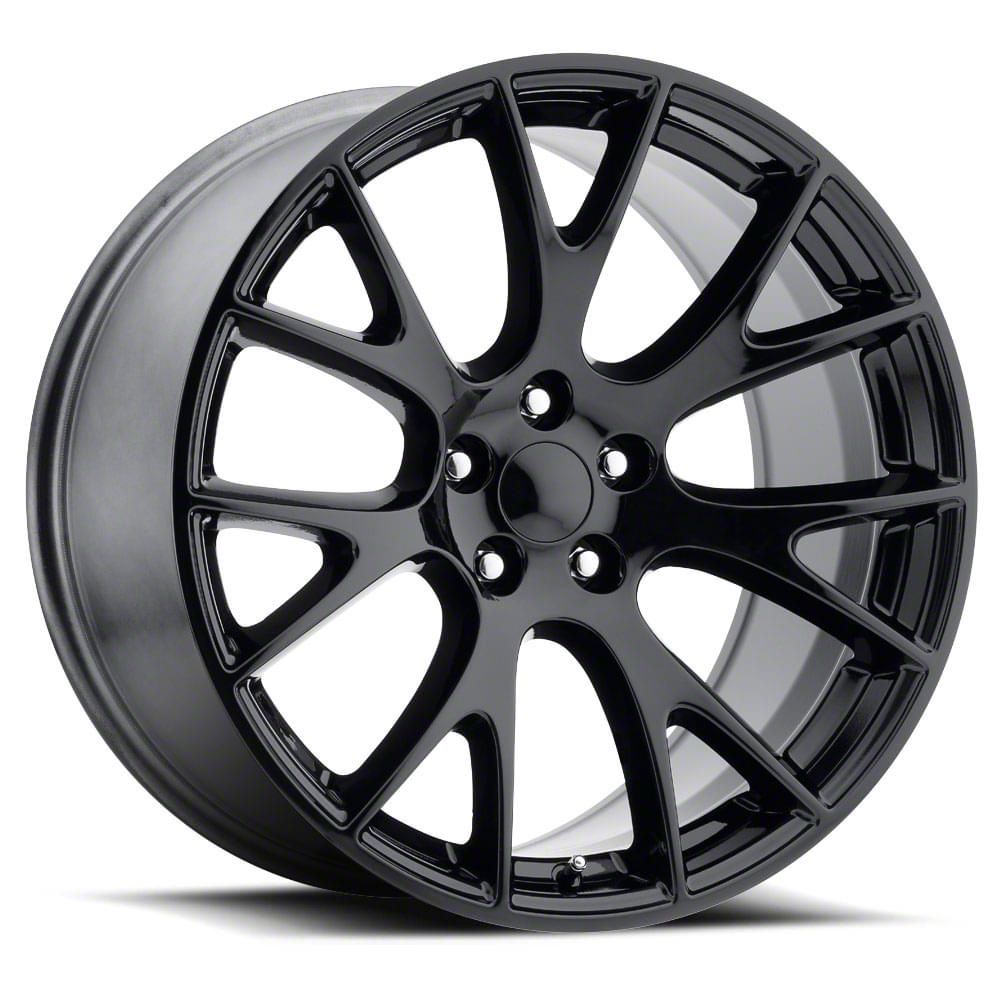 The 22x9 Hellcat Replica Gloss Black Wheel; 22x9; 30mm Offset is completed in a high-quality gloss black finish, which will be sure to turn heads. For added durability and appearance, there is a durable clear coat that withstands the rigors of the road.