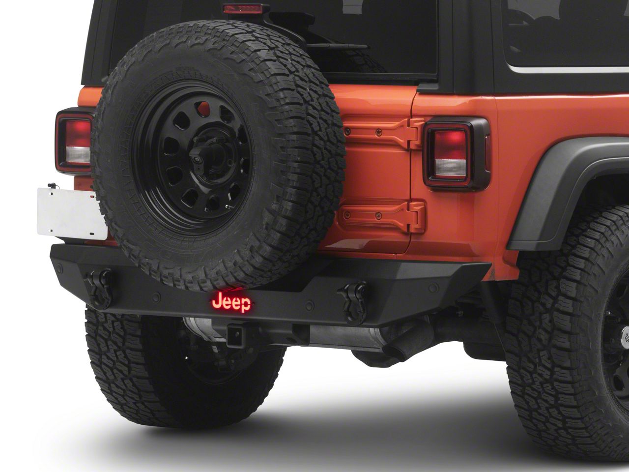Application. This Jeep Licensed by RedRock HD Rear Bumper with LED Jeep Logo Backlight is designed to fit 2018-2026 Jeep Wrangler JL models. This Rear Bumper is designed to work with models that are equipped with or without rear mounted backup sensors.
