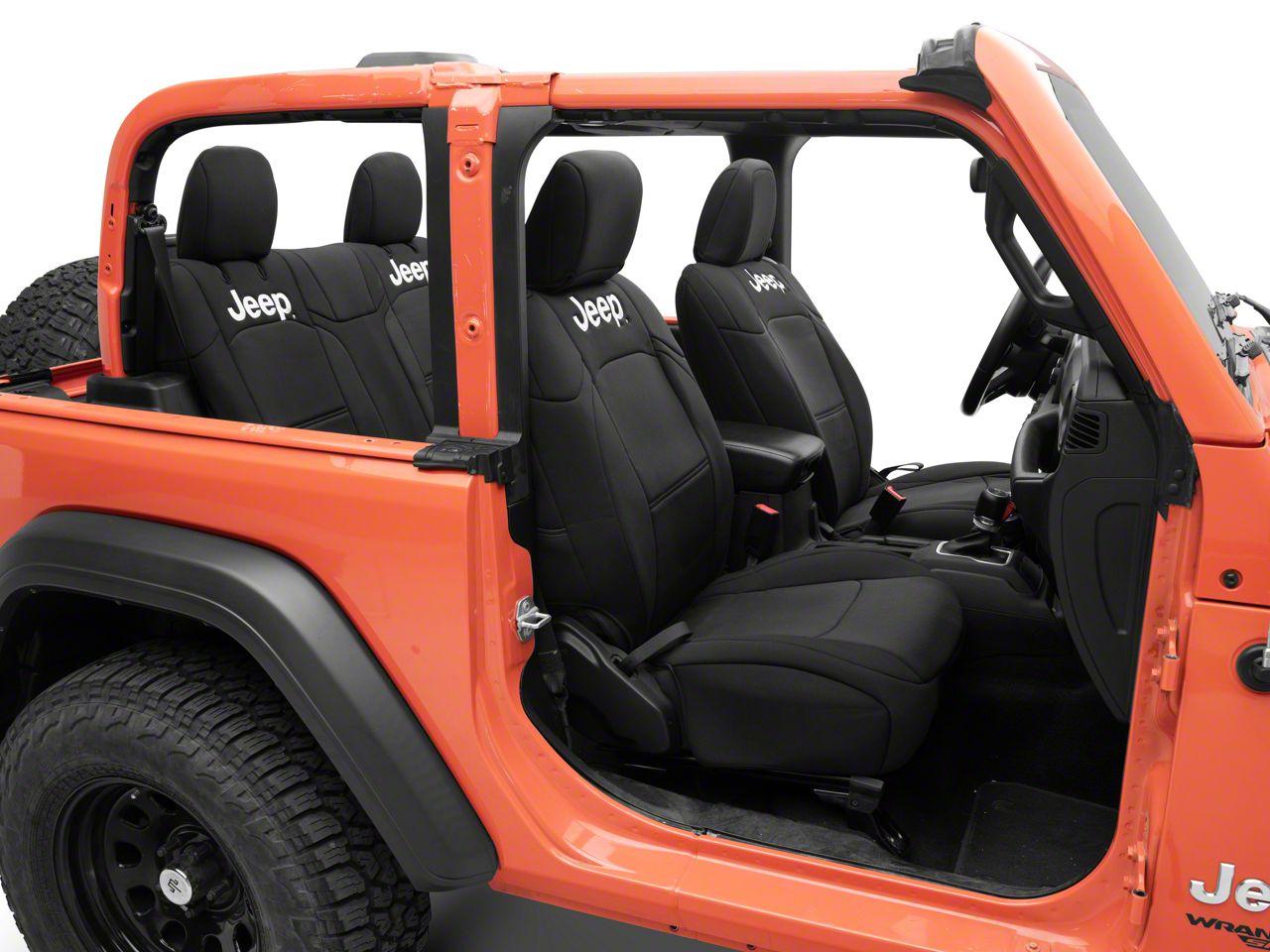 Extra Interior Protection. An excellent way to protect your 2-door JL Wrangler's front and rear seats from excessive wear and tear is by installing a set of Jeep Licensed by TruShield Neoprene Front and Rear Seat Covers. These neoprene Seat Covers will not only protect your seats, but they will also shield you from extreme temperature differences keeping you comfortable no matter the season.