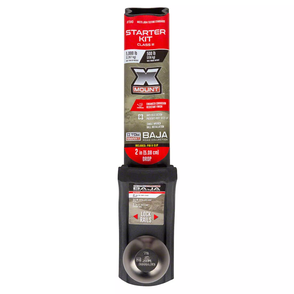 The BAJA Collection Class III, 5,000 lb. Starter Kit has the towing essentials to get you started hauling and on the road. It includes a 2 in. ball, a 5/8 in. standard pin, and a 2 in. Drop x 3/4 in. Rise X-Mount ball mount. The unique, patented X-Mount design channels away moisture while in the aperture of the receiver hitch and also includes a lockrail system that allows you to torque the hitch ball with a single wrench. The X-Mount ball mount can be used in either the drop or rise position for towing applications depending on your requirement. Make sure to know the total weight of the trailer (GTW) you are towing and the maximum towing capacity determined by your vehicle manufacturer to select the correct Class.