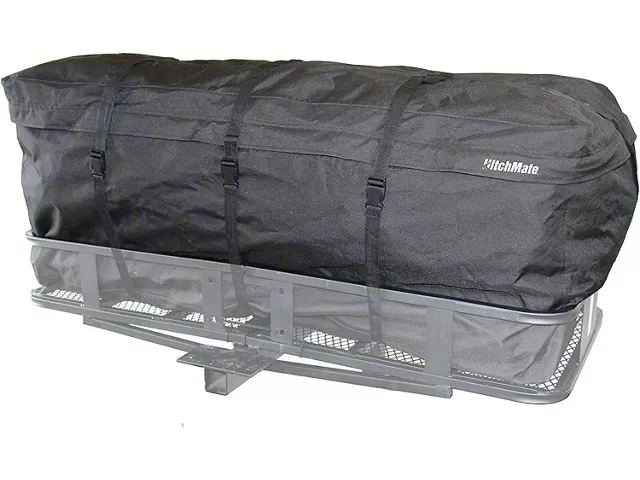Description. No matter what you’re hauling on your hitch-mounted cargo carrier – camping gear, tailgating supplies, coolers or anything else – you want it to be clean and tidy when you arrive. That’s where the CargoLoad bag comes in, offering easy-to-use, weather-resistant protection for anything you’re carrying. Effectively blocking dirt and grime to keep your cargo clean, the CargoLoad bag is specifically designed to be weather-resistant, not waterproof, to avoid the buildup of condensation, and for easy drying of interior, weatherproof cargo. Its roomy size of 48” x 20” x 20” is perfect for HitchMate’s line of folding and static-mount hitch racks (sold separately) and other similar-sized carriers. With durable, weather-resistant construction, an 8-strap securing system for maximum flexibility and security, a heavy-duty zipper with protective cover and sold complete with a durable storage back for tidy stowage, the CargoLoad is the complete solution that makes carrying your stuff a ton easier.