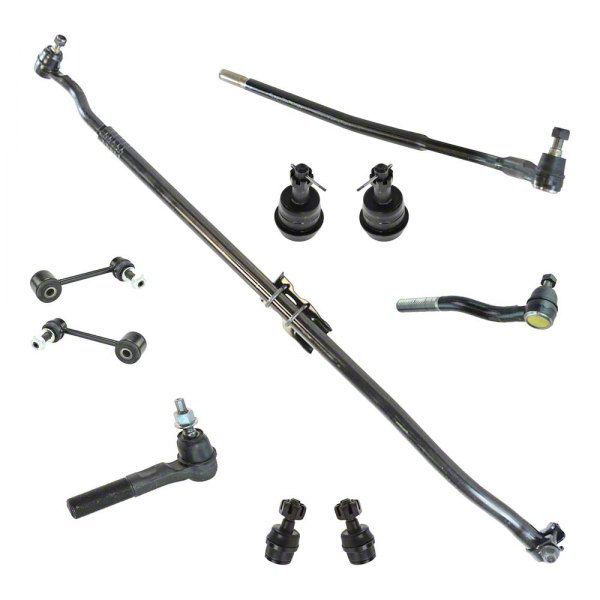 Clear-Cut Design. Is the steering and suspension components of your Jeep Wrangler JK already old and malfunctioning? Then this 10-Piece Steering and Suspension Kit is what you need. It is engineered precisely to improve the handling and road feel of your vehicle. Using this kit will provide your vehicle with an accurate steering and suspension system, which will allow the wheels to smoothly move while being firmly suspended. With this 10-Piece Steering and Suspension Kit for 2007 to 2018 Jeep Wrangler JK, rest assured that you and your passengers are kept safe while riding your Jeep Wrangler JK on the road.