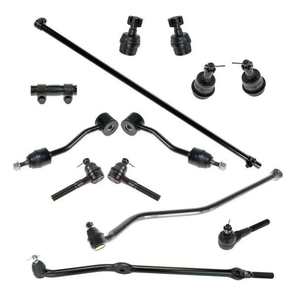 Factory Replacement. Bring back the stability and control in your Jeep Wrangler with this 13-Piece Steering and Suspension Kit. Made from high-strength materials, it offers secure and reliable support to your vehicle to ensure safe driving as well as comfortable maneuvering. It replaces and fixes your worn-out hardware as well as guarantee compatibility with the rest of your rig.