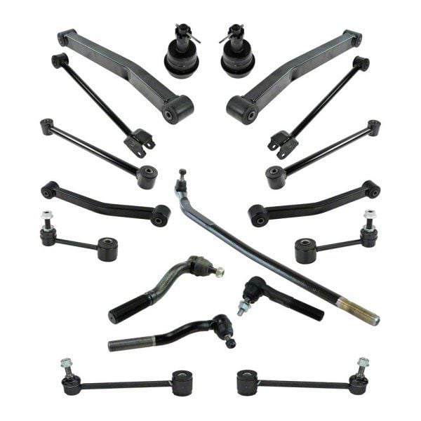 All-in-One-Kit. Complete your steering and suspension repair and save time and money with our 20-Piece Steering and Suspension Kit for your Wrangler JK. This complete kit has all you need to restore your steering and suspension system’s functionality. Having all the parts you need in one package not only saves time and money but also takes the guesswork out with matching components and testing their compatibility.