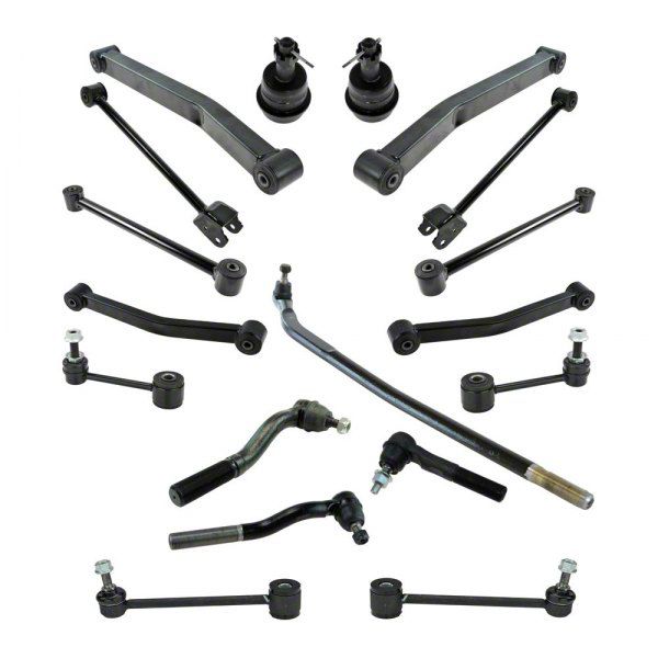 Quality and Longevity. This 20-Piece Steering and Suspension Kit consist of parts made from premium-quality materials and anti-corrosion coating. They have been pre-match and tested for compatibility and reliability, and these parts have been pre-greased and sealed so no further maintenance is required. for This kit includes sway bar links, ball joints, control arms, tie rods, and drag links.