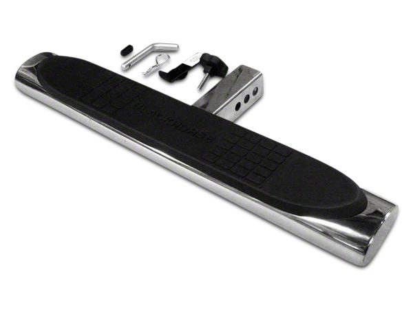 Enhanced Stylish Look. This Polished Stainless Steel 28-inch Oval Hitch Step adds elegance to your vehicle. The rubber pad integrated into the product design not only touches the vehicle with a spasm of style but also eliminates the irritating rattling sound. These Hitch Step is a custom accessory to make the truck stand out.
