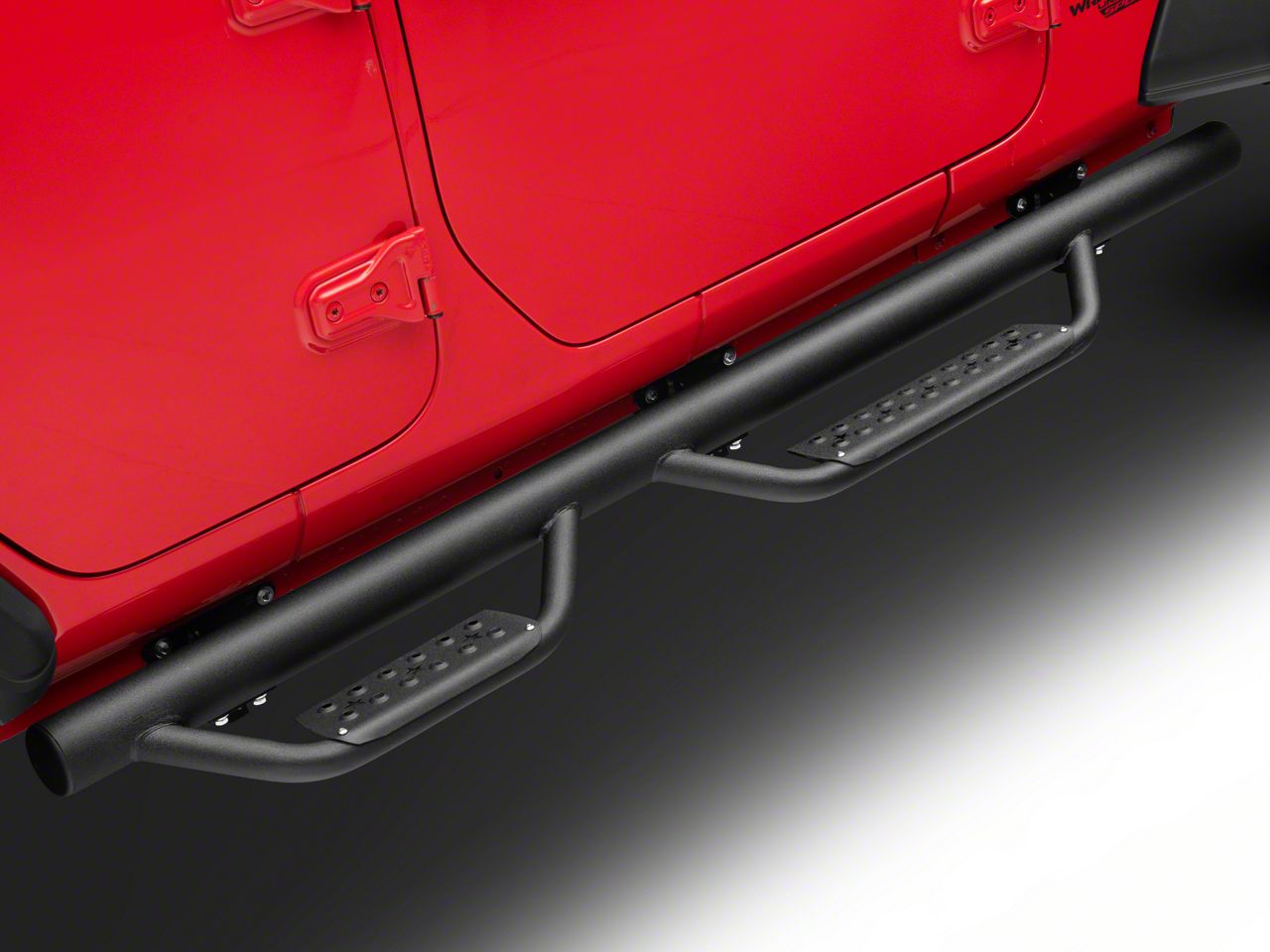 Body Protection. These step bars provide protection for your Wrangler's lower body from damage that can be caused by rocks, logs, and stumps. Keep your Jeep's body in tiptop condition even when you encounter trail obstacles.