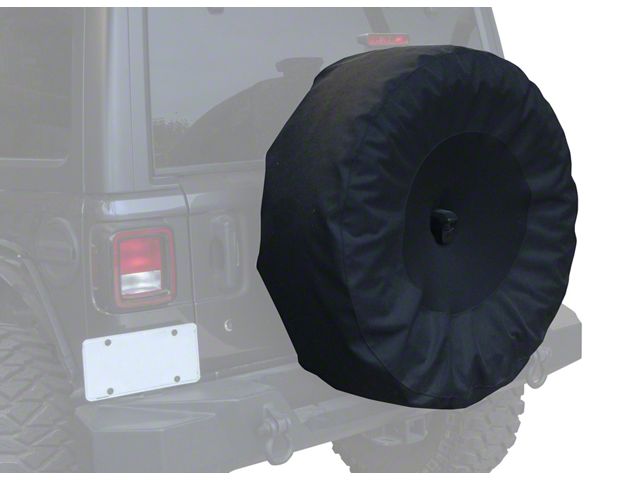 Extend the Life of Your Spare Tire. Looking for a spare tire cover that will protect your wheel and tire while adding some style? Look no further than our Jeep Wrangler 30 to 32-inch spare tire cover! Made from heavy-duty black twill fabric, this cover is designed to fit snugly around your spare tire. It also features a center cut out so you can easily access the spare, and an adjustment cord for a perfect fit.