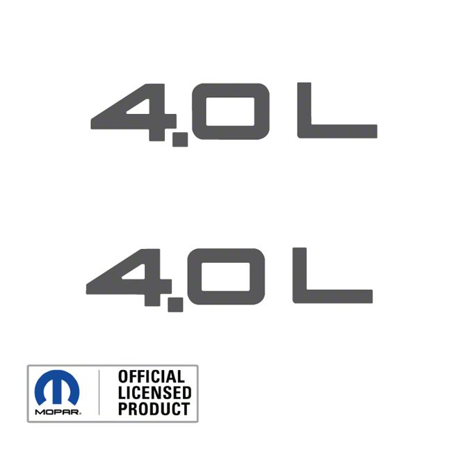 Restore Factory Looks. The 4.0L Side Logo decal is a high-quality reproduction designed to replicate the original styling found on 1997 to 2006 Jeep Wrangler TJ models. This decal restores the iconic 4.0L engine callout to your vehicle's exterior, providing a subtle yet classic enhancement for Jeep enthusiasts focused on authenticity and detail.