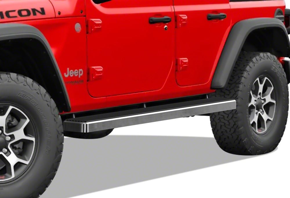 Style and Function. Upgrade the appearance of your 4-door Wrangler with a set of 5-Inch iStep Running Boards. These great looking iStep Running Boards furnish a convenient 5-Inch wide step for easy entry in and out of your 2018-2026 Jeep Wrangler JL 4 Door while giving it a clean, modern appearance. As an added bonus, these Running Boards will help to protect your vehicle's body and paint from stones and road debris that get kicked up while driving.