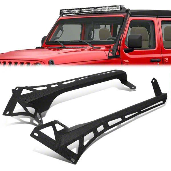 Application. This 50 to 52-Inch Windshield LED Light Bar Mounting Brackets fits 2018–2026 Jeep Wrangler JL models. Excludes 4xe and Rubicon 392 models.