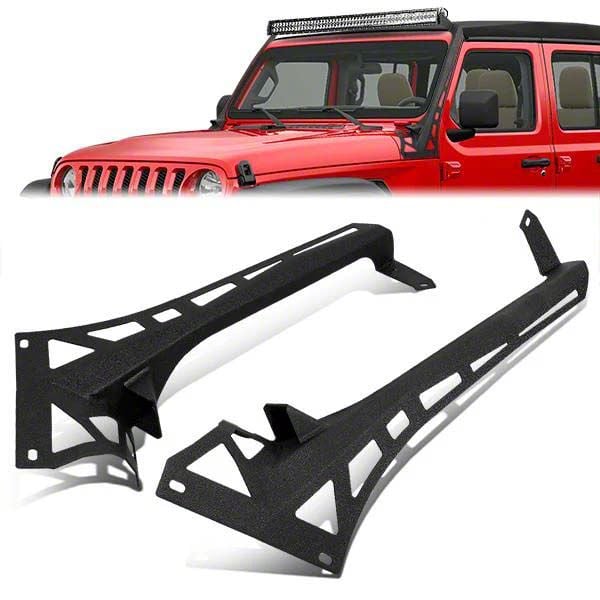 Convenient Light Bar and Pod Mounting Solution. These Windshield LED Light Bar and Pod Mounting Brackets are designed to help you easily mount 50 to 52-inch LED light bars on your 2018-2026 Jeep Wrangler JL. With additional lower mounting points, they also accommodate pod lights, providing flexible lighting options.