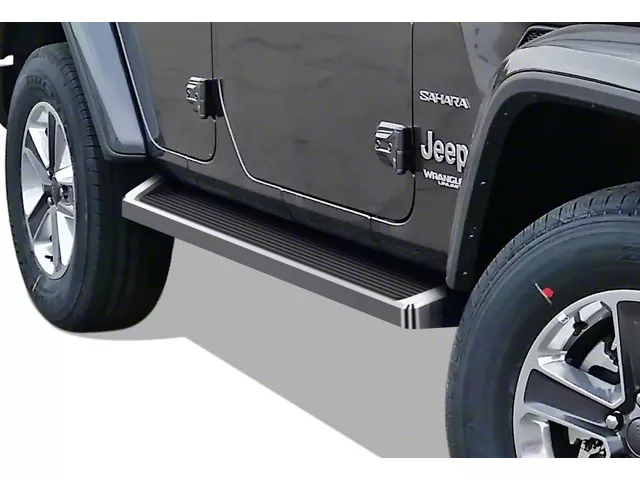 Style and Function. Upgrade the appearance of your 4 Door JL Wrangler with a set of 6-Inch iRunning Boards. These great looking iRunning Boards furnish a convenient 6-inch wide step for easy entry in and out of your 2018-2026 4 Door Jeep Wrangler JL while giving it a clean, modern appearance. As an added bonus, these Running Boards will help to protect your vehicle's body and paint from stones and road debris that get kicked up while driving.