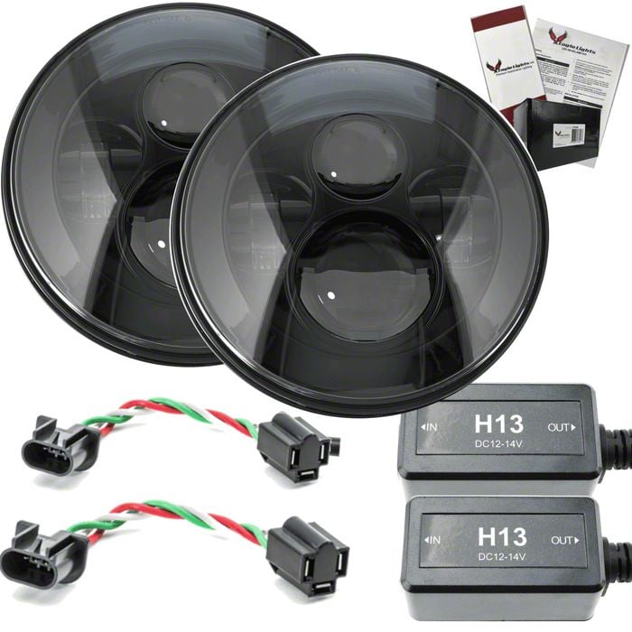 Modern Lighting Upgrade. The Seven-Inch Gen I Round LED Projector Headlights provide a significant performance and style upgrade for your Jeep Wrangler. With clear lenses and an aggressive black housing, these lights deliver a sharp, focused beam pattern for superior visibility in both high and low beam modes.