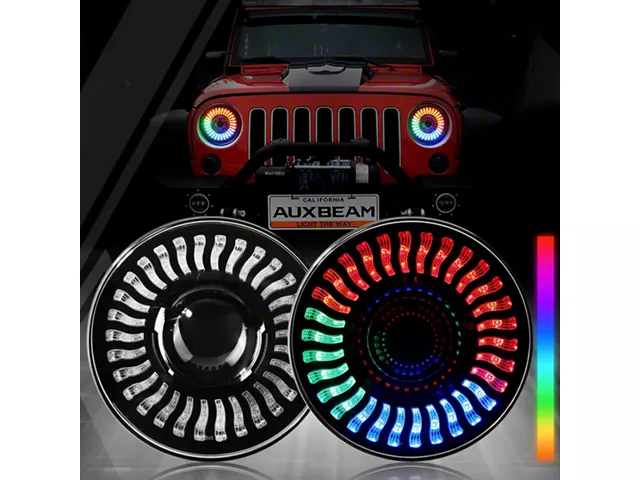 Brilliant. Illuminate your driving path with these 7-Inch RGB LED Headlights, designed to fit all 1976-1986 Jeep CJ7 and 1997-2018 Jeep Wrangler TJ and JK models. These headlights feature a 6000K pure white color temperature, providing a brilliant and clear light output for enhanced visibility. Encased in black aluminum alloy housing, these headlights offer excellent heat dissipation and a sleek look.