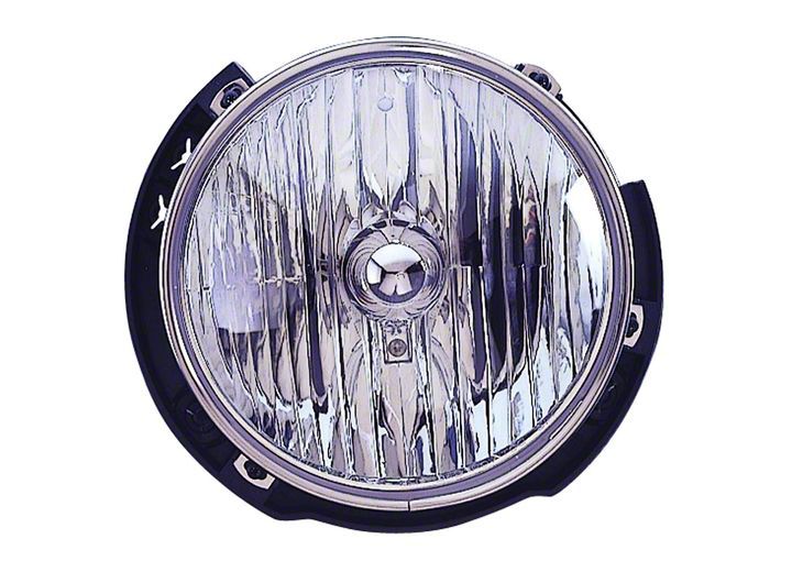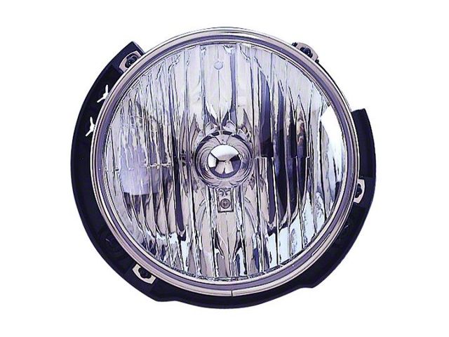 Stock Replacement Headlight. Conveniently replace a damaged passenger’s side headlight on your Jeep using this Jeep Wrangler 7-Inch round halogen headlight. The light is designed to look and perform just like the original light, making it a simple replacement option. The light reuses the stock halogen bulbs and installs easily in 2007-2018 Wrangler JK models.