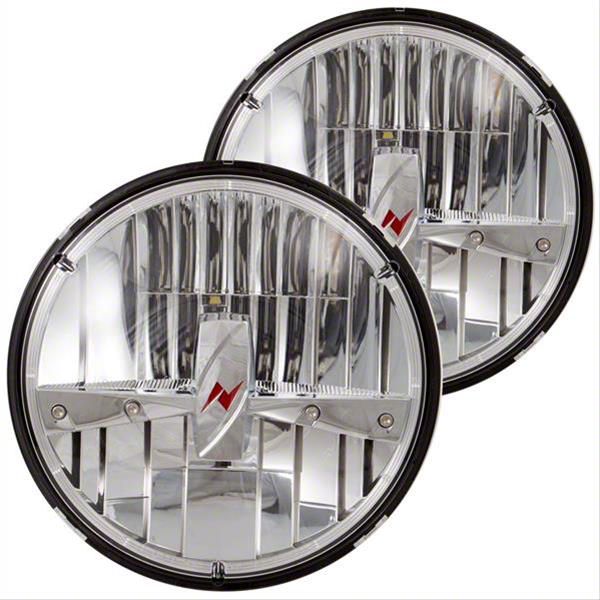 Bright and Modern Lights. Modernize your Jeep using these Jeep Wrangler 7-Inch Round LED headlights that are designed to take the place of standard headlights included halogen or incandescent bulbs. These headlamps help you see farther, and they fit a range of Jeep CJ5, CJ7, and Wrangler models. The lights are a modern upgrade to standard headlights and are a good investment for most Jeep owners.