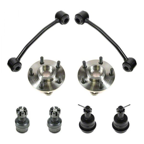 OE Direct Replacement. A comprehensive set including ball bearing type ball joins, sway bar links, wheel bearing, and hub assemblies, this 8-Piece Steering and Suspension Kit was made to fully replace your Jeep Wrangler YJ’s stock suspension and restore its original performance and handling.
