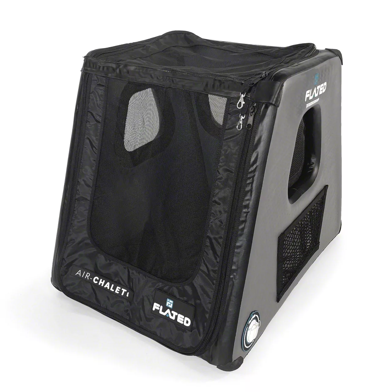 The Air-Chalet’s design not only makes for easy storage, but the inflatable structure provides a firm, shock-absorbing yet forgiving environment. Think rigid-padded-bounce-house for Fido. Multiple screened windows and ceiling allow for plentiful ventilation and the full front, quick zip door offers plenty of room for easy access. With lightweight versatility, the Air-Chalet eliminates the need for separate in-home, in-vehicle pet crates. Easily move it from the family room floor to the backseat to the cargo space to the shade of your next campsite.