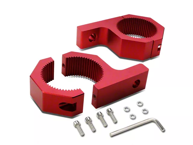Construction and Appearance. Made from high-quality aluminum, the brackets feature an anodized finish that resists corrosion and adds durability. They are engineered to fit onto bars with a 2-inch outside diameter and can hold lights with a 7/16-inch diameter mounting bolt. A rubber strip is included to protect the bar's finish and provide added grip.