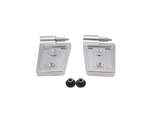 Description. Its finally time to upgrade those corroded hood hinges and replace them with our billet version. These are precisely machined from 6061 military grade aluminum. These also have a significant difference in looks comparing to the factory ones. Direct replacement. Fits all 2007-2018 Jeep Wrangler JK /JKU models. Comes with stainless steel mounting pin and nut. (NOTE: you need to cut off your factory nut to remove the factory outer hinges, then these bolt right on). Silver machined finish. Proudly manufactured here in U.S.A