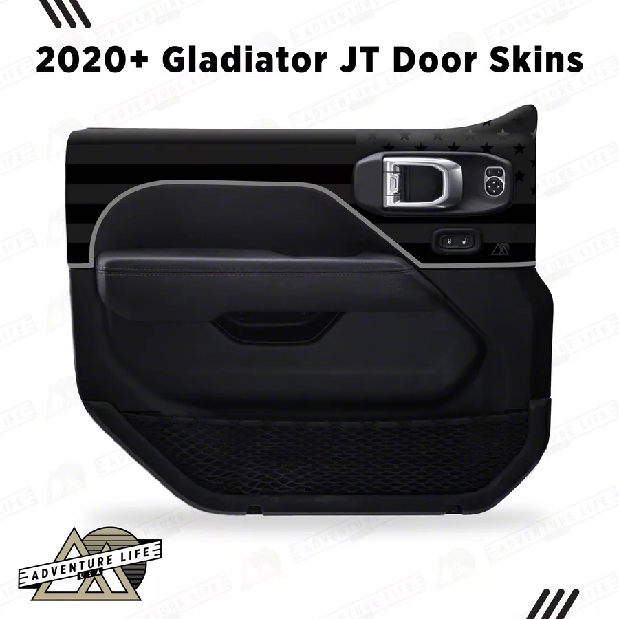 American Flag Interior Door Skins; Front and Rear; Black with Gray Outline (18-26 Jeep Wrangler JL 4-Door w/ Power Windows & Locks)Find parts that fit my vehicle