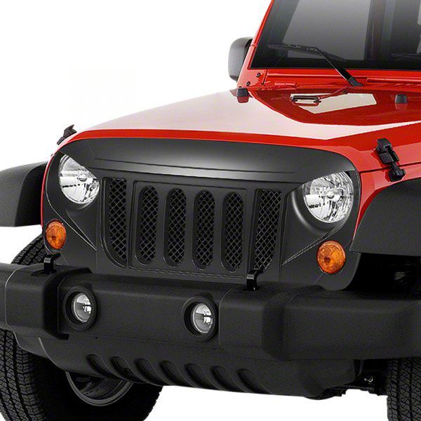 Stylish and Functional Grille Guard. The Angry Bird Style Grille Guard (Black) offers a unique and eye-catching look inspired by the popular Angry Birds design. This grille guard delivers style and added front-end protection. It is a reliable factory-quality replacement designed to seamlessly integrate with your Jeep Wrangler JK's factory parts.